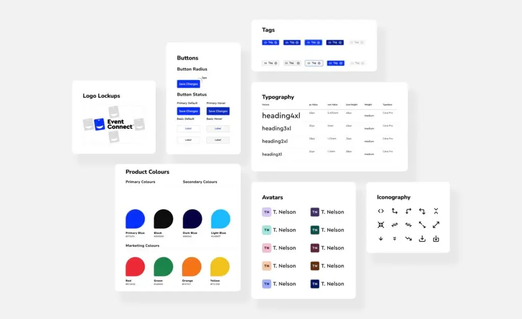Collaborated with a team of designers to create EventConnect’s brand and core design system, including logo, color foundations, and reusable UI components.